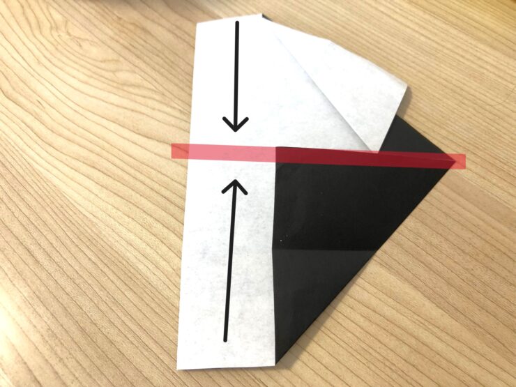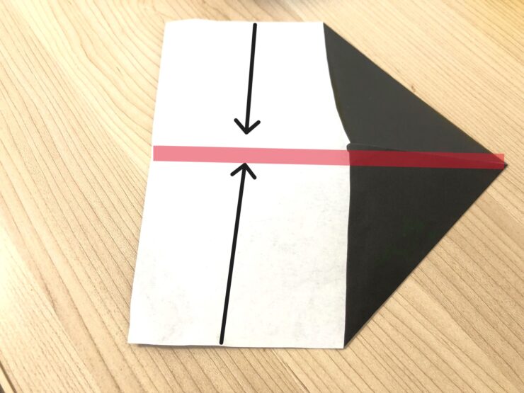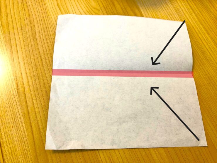 折りたたむだけ赤線に合わせて折り、その後の工程は同じように折ります。
