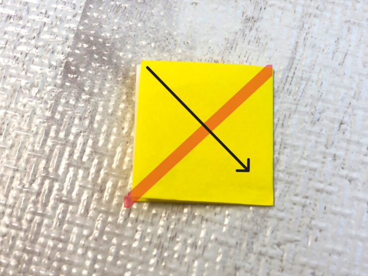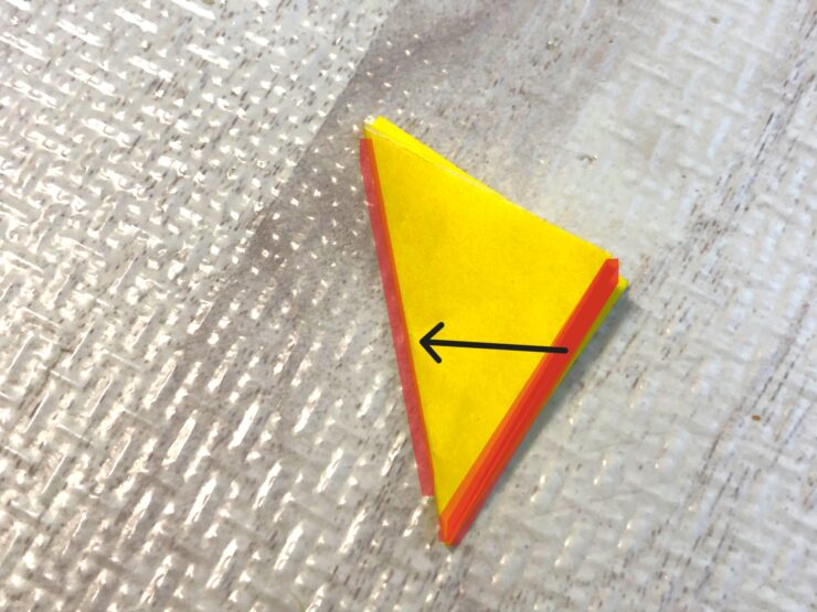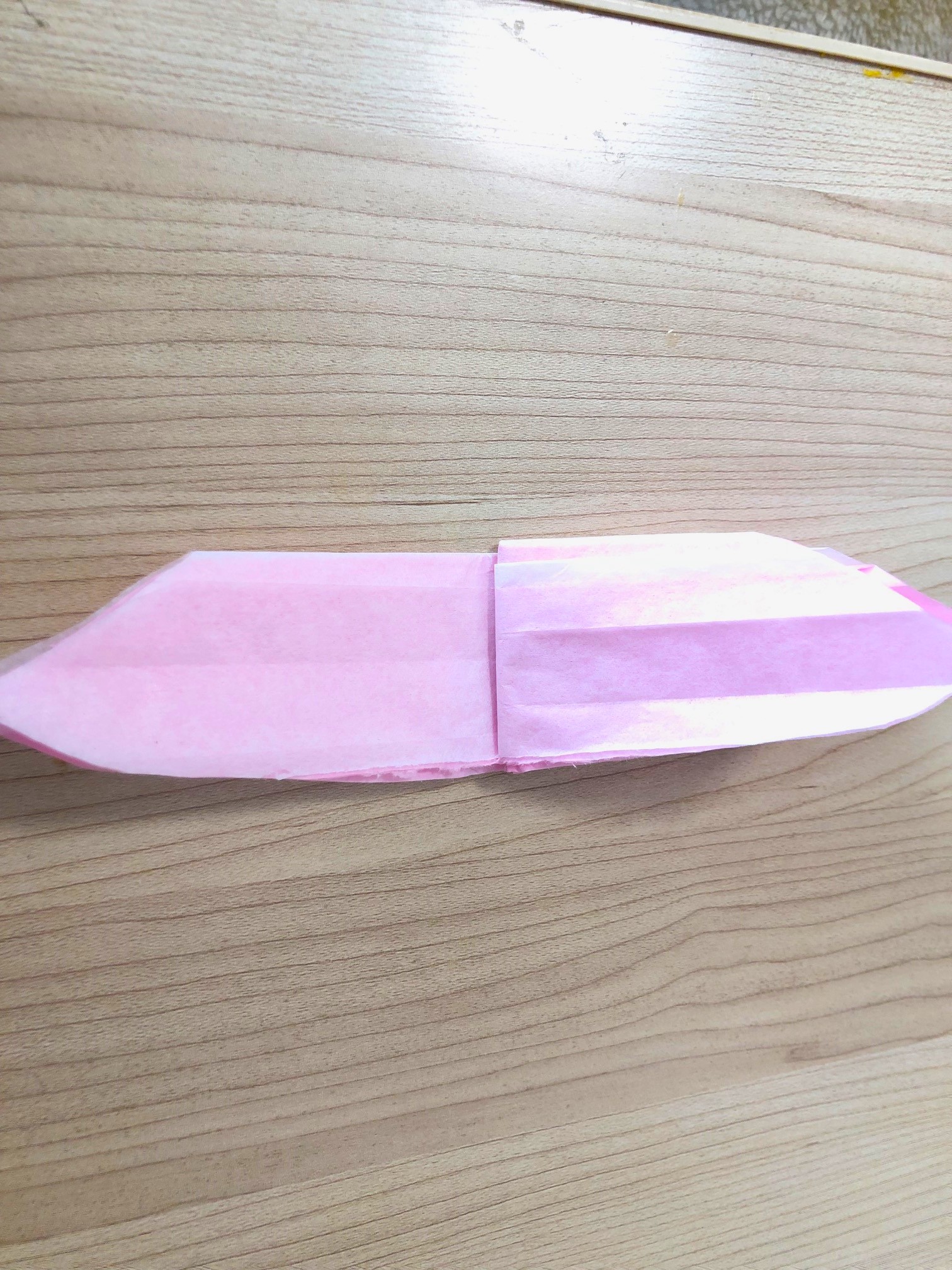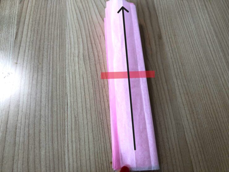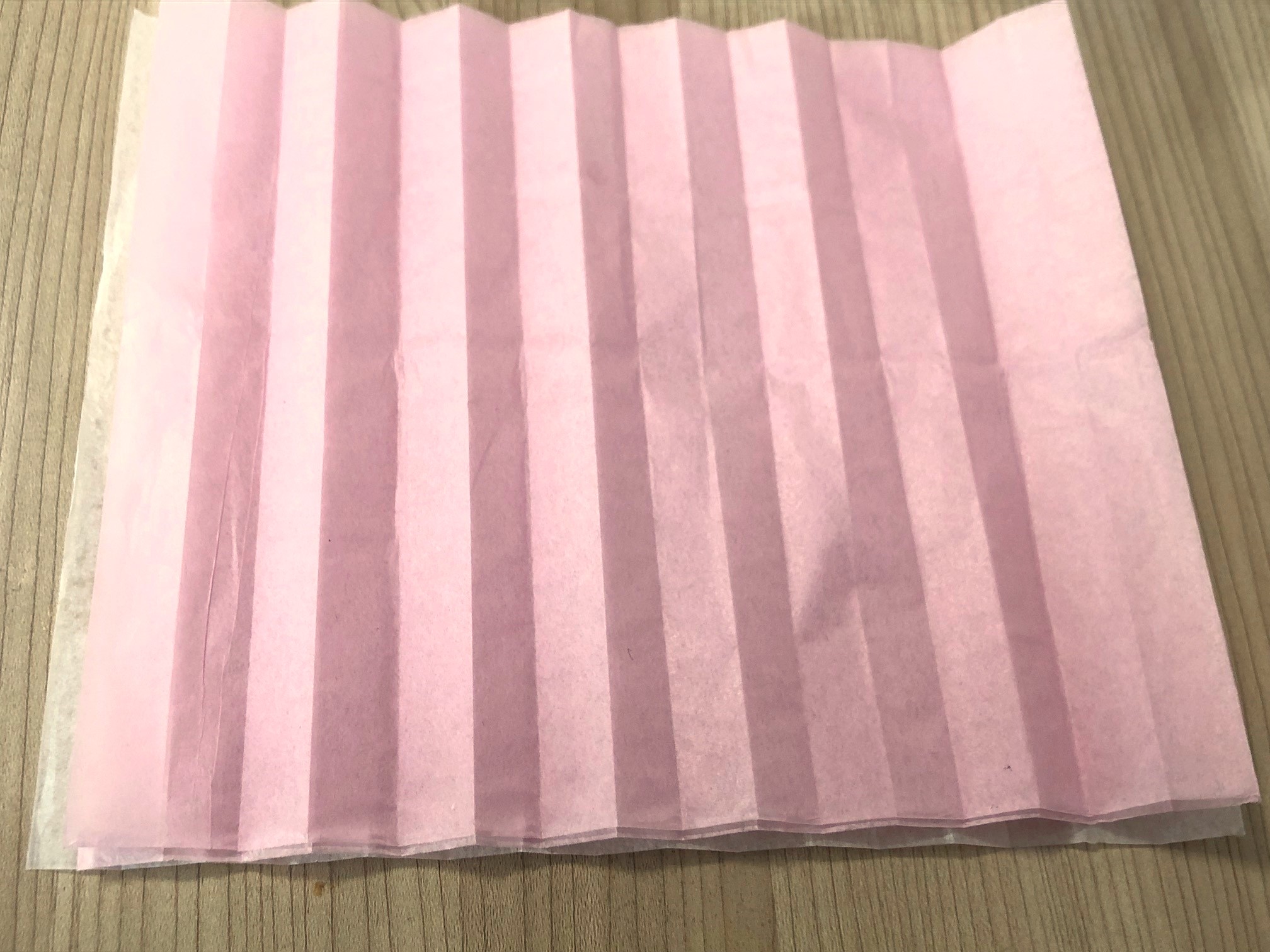 その上にピンクのお花紙2枚を光沢を上にして重ねます。