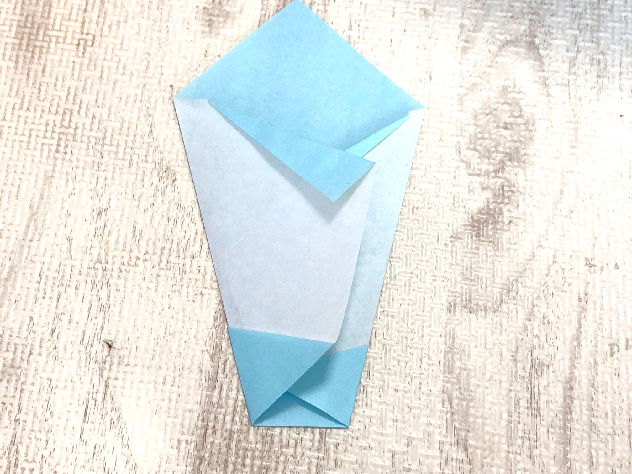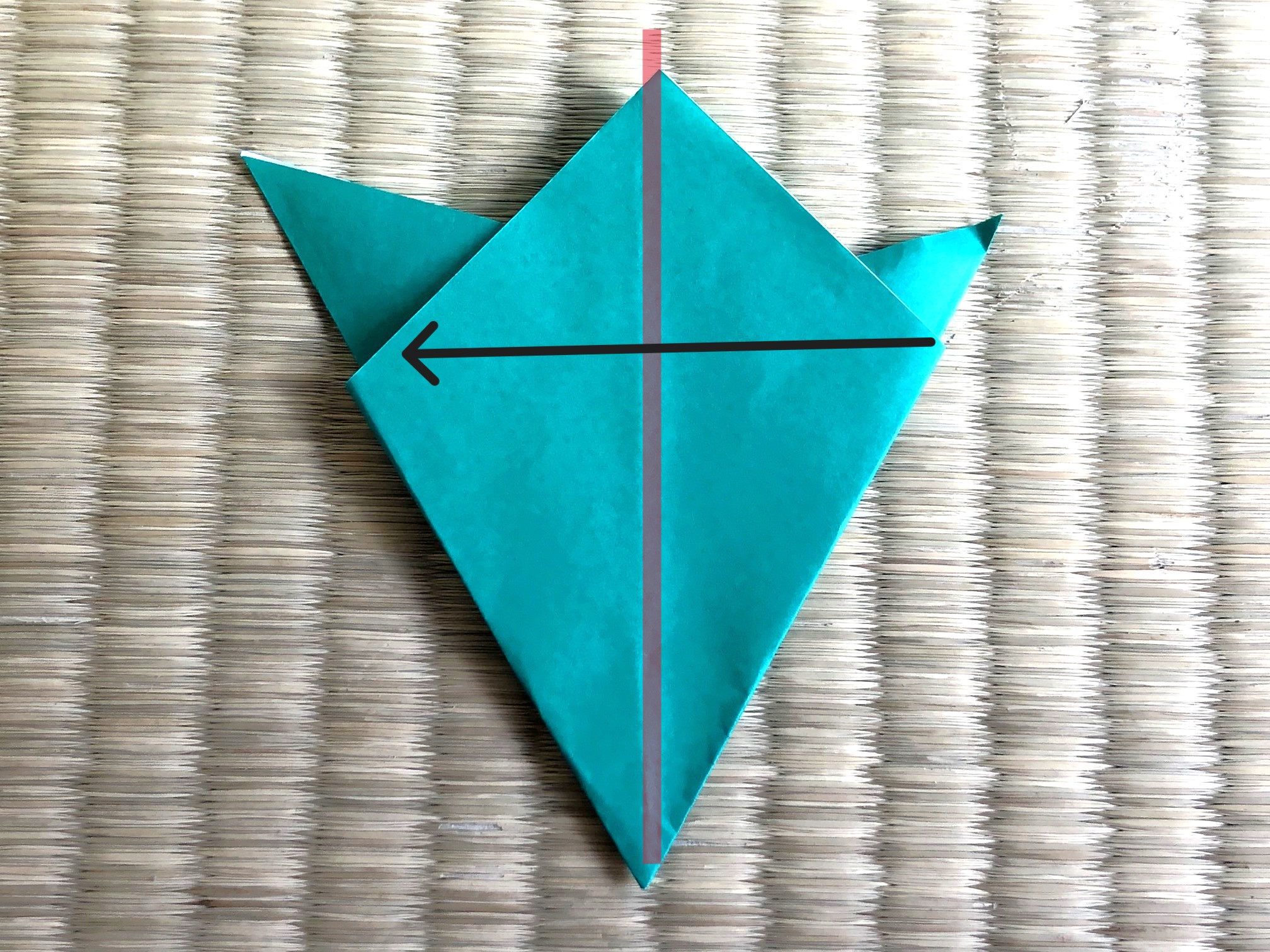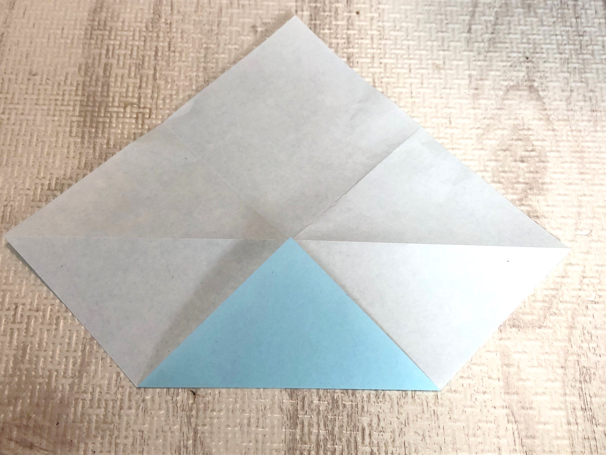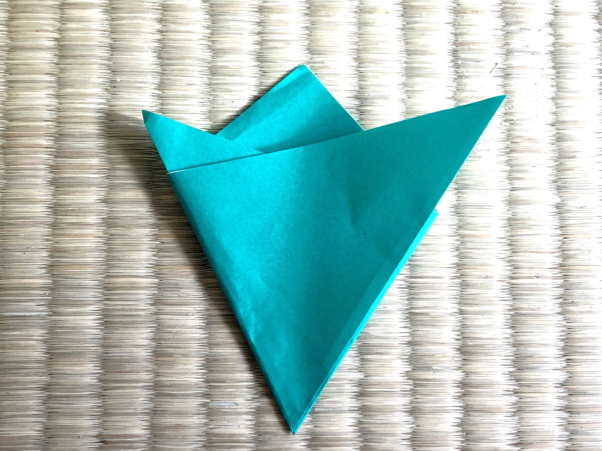 緑の折り紙の折り重なる境目と合わせて貼りましょう♪折り目も隠れて見た目もきれいに!