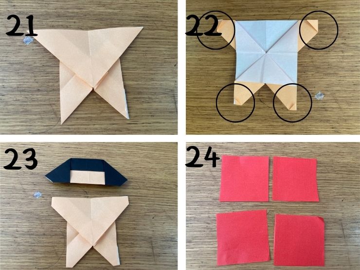 ㉒裏返し手に丸みをもたせるように少し折り込みます。