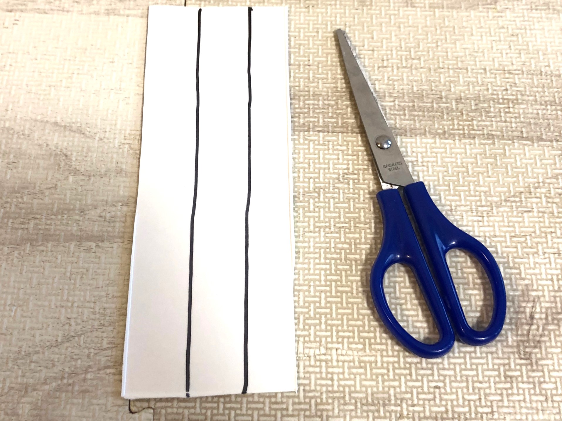 ハサミで切る作業も、あらかじめ切る線を下書きすればスムーズにより簡単に竹とんぼ作りが進みます。