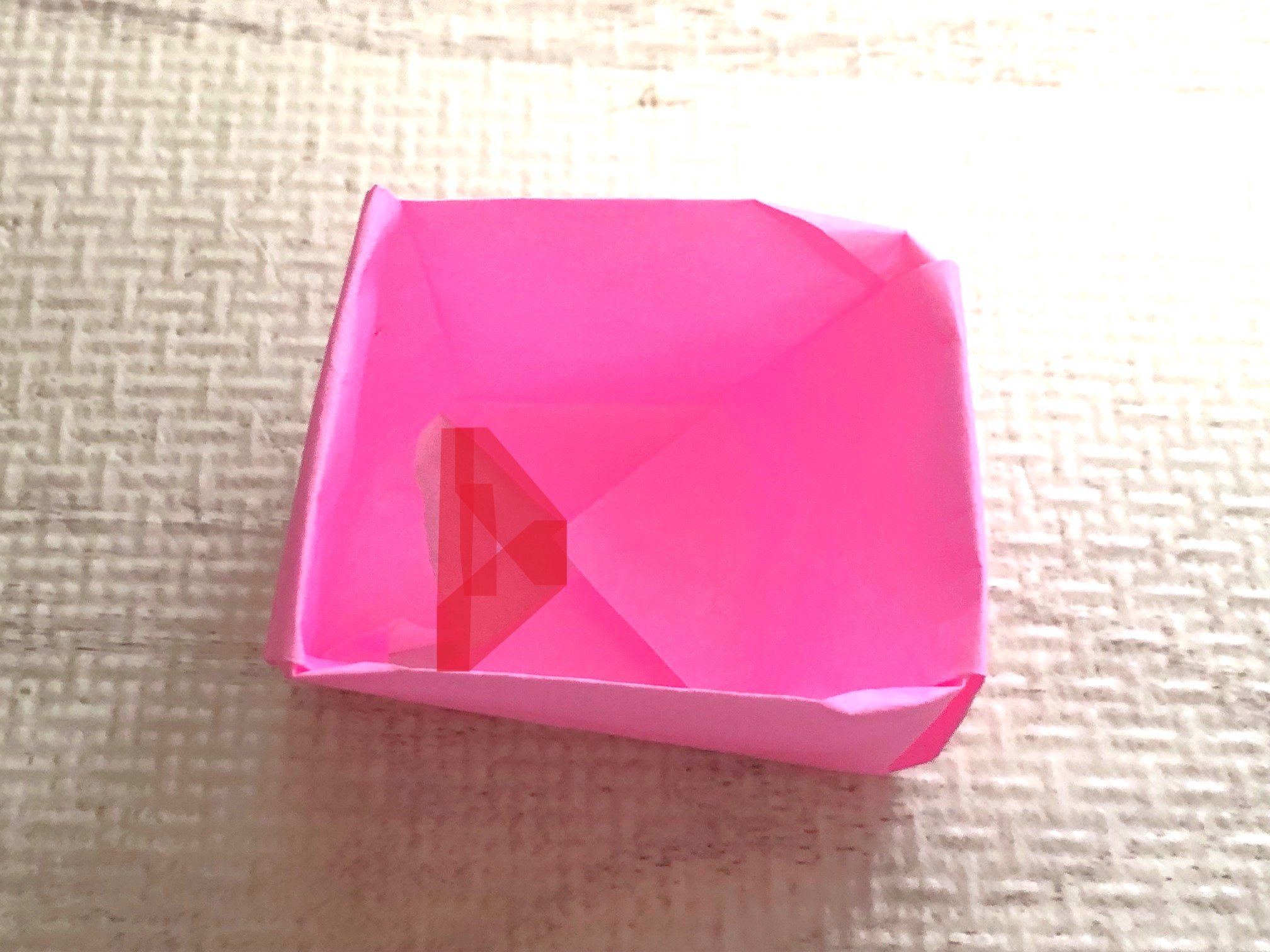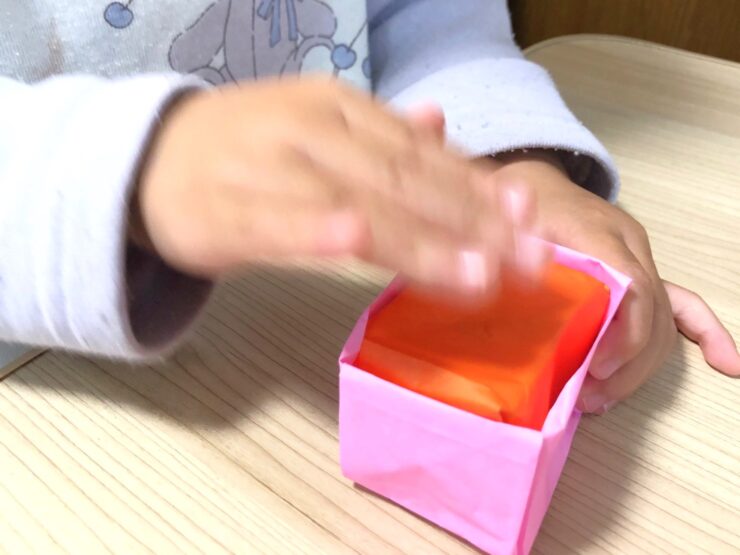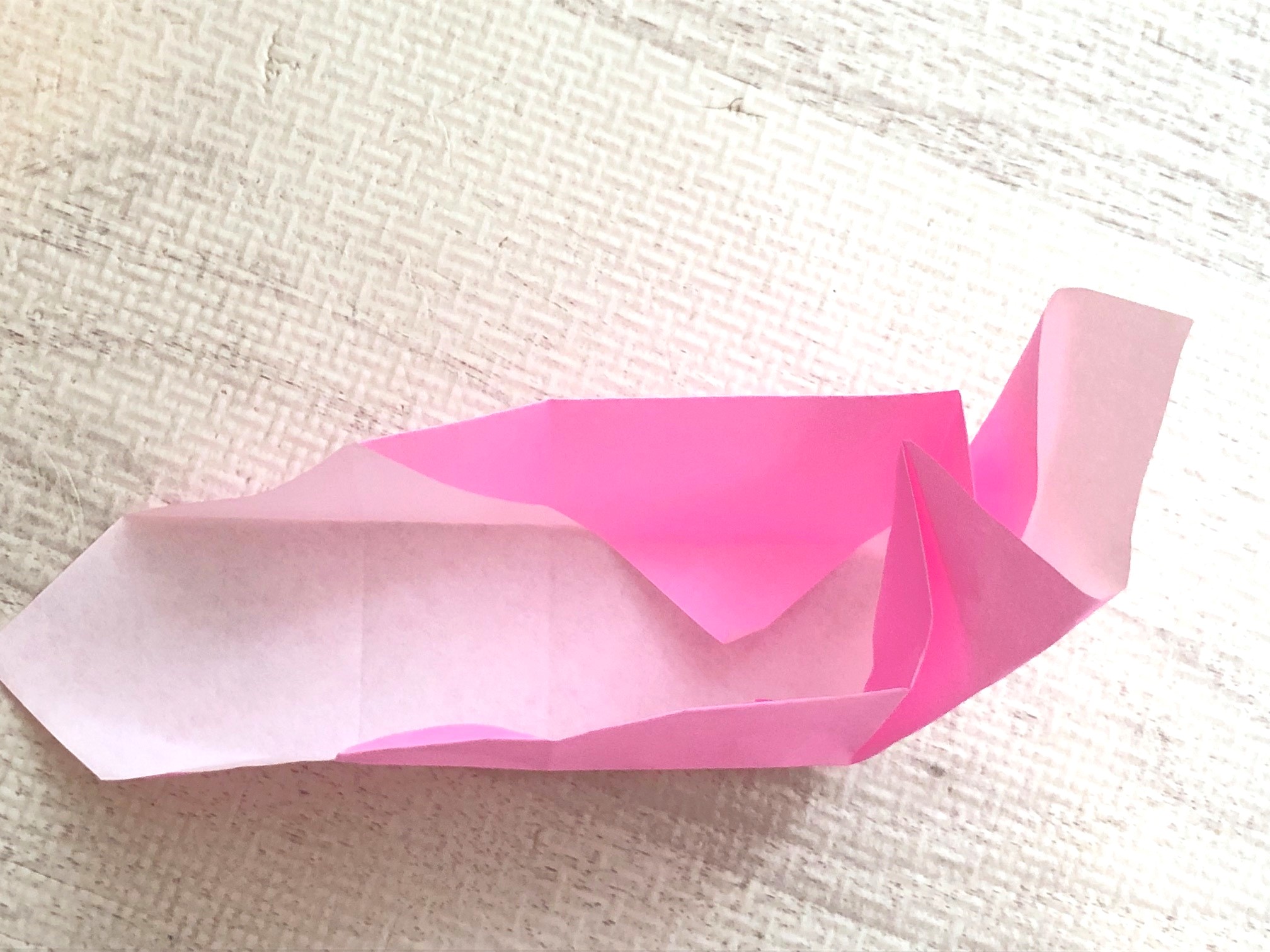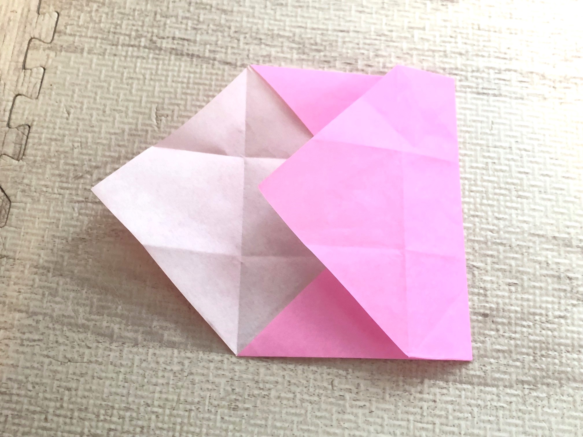 4分の3に切った折り紙は中に入れてしまうため色は見えなくなってしまいます。