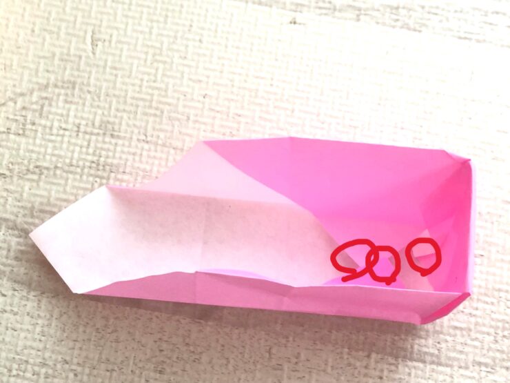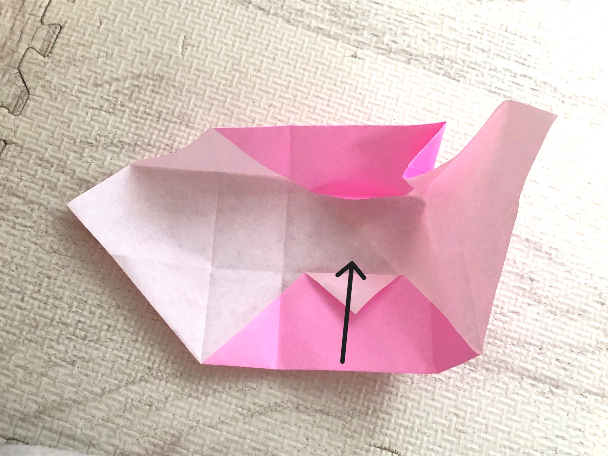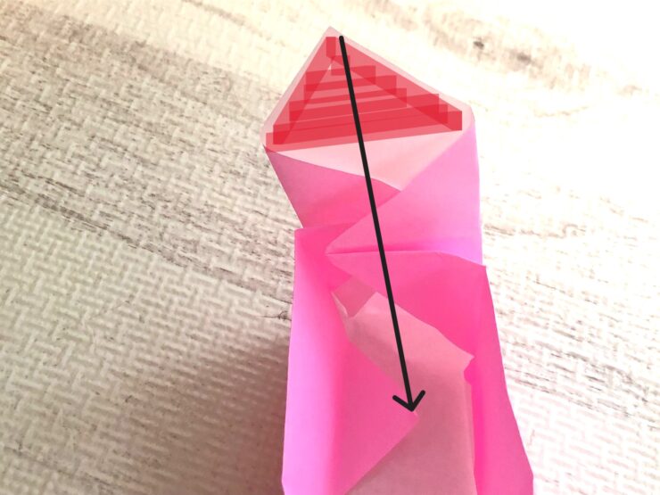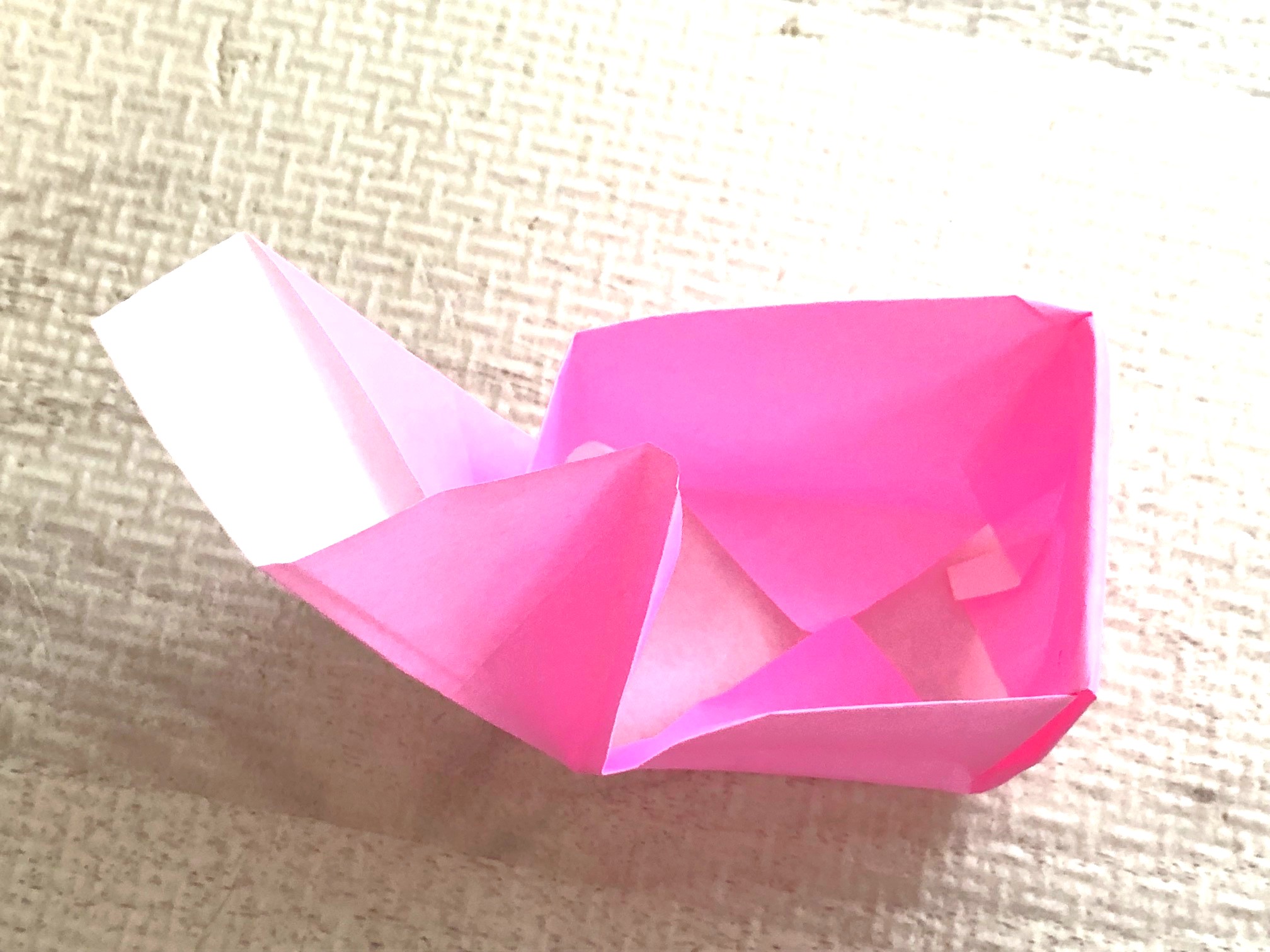4分の3に切った折り紙は中に入れてしまうため色は見えなくなってしまいます。
