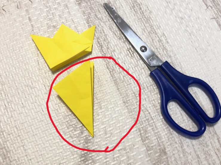 お子様が作る場合にはハサミで切る工程は目を離さないようにしてください。折り重なることで、折り紙に少し厚みがでて切りにくいことがあるため、手を添えるなど補助しながら安全に作りましょう!
