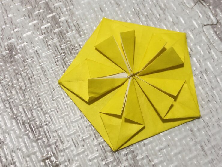 ほかの4か所の辺からも同じように、折って戻すを繰り返します。