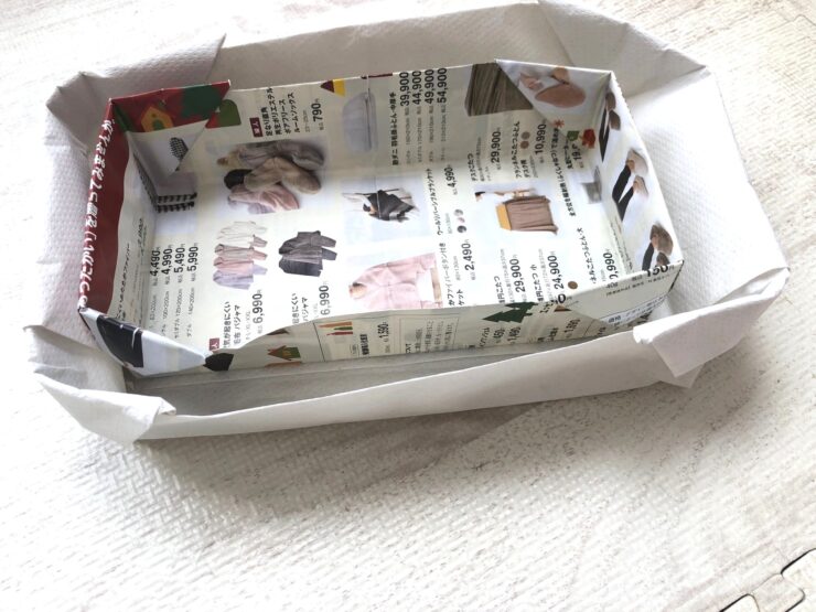 縦長長方形の箱はチラシで簡単で丈夫!ゴミ箱にもおすすめ