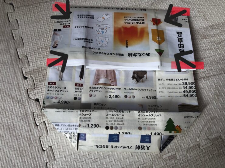 チラシは厚めの紙を使用すると、より丈夫で長持ちしますし、包装紙や新聞紙を使って大きな箱を作ることもできます。