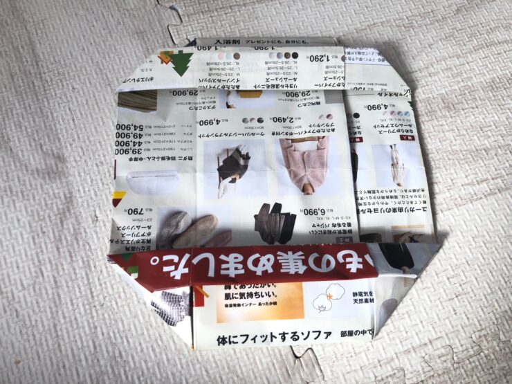 よく手元に届く長方形のチラシで、簡単な箱の折り方を知っていたら読んだ後のチラシも有効活用できますね♪