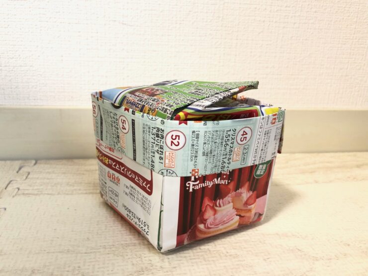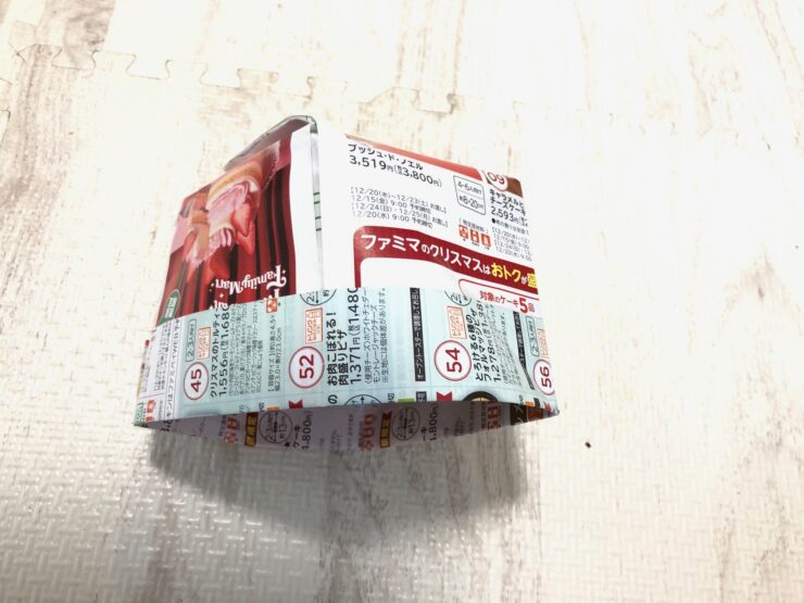 以上で、チラシで作る正方形の箱が完成しました。