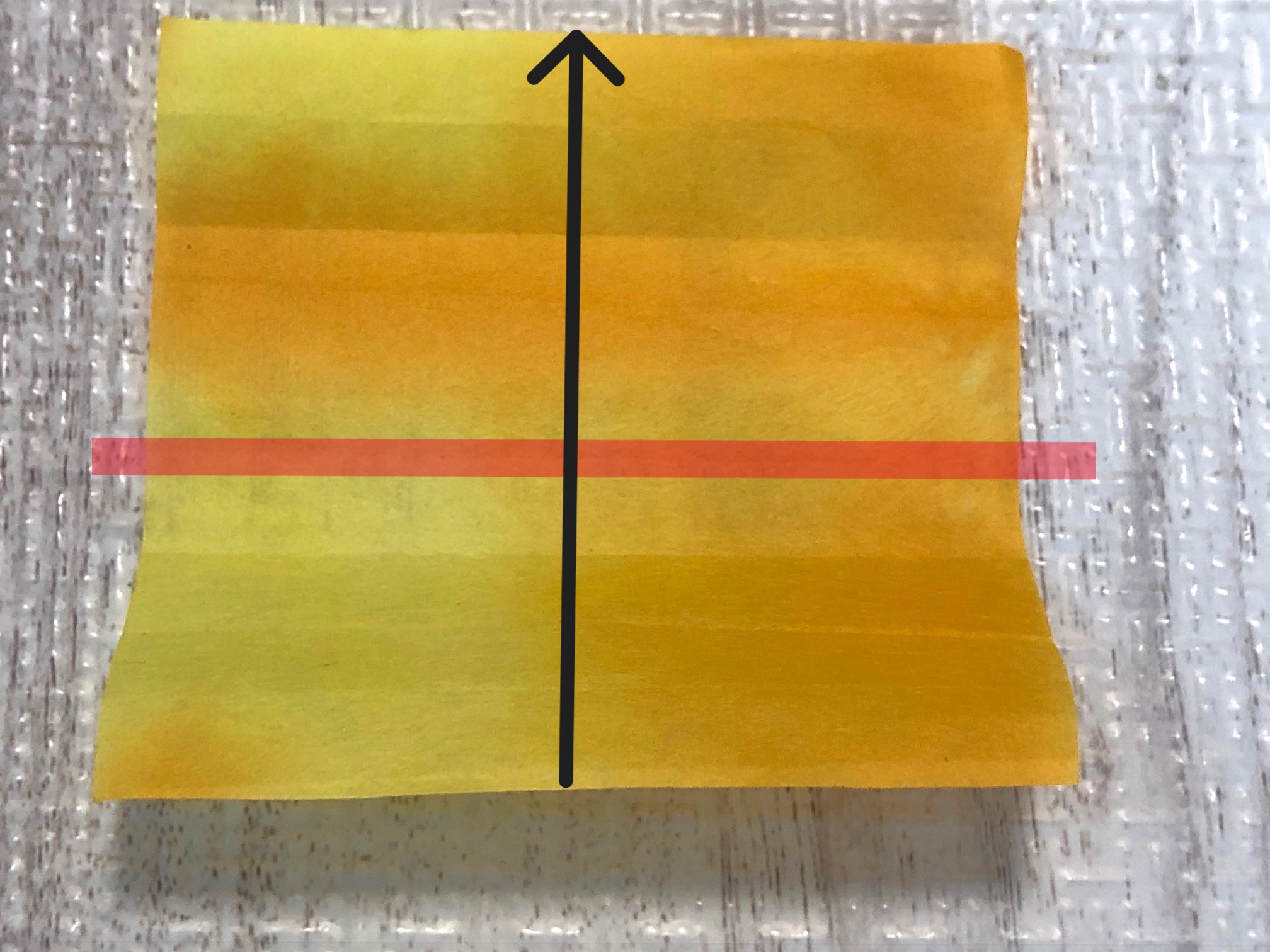 STEP2で折り返してつけた折線に合わせて、折ります。