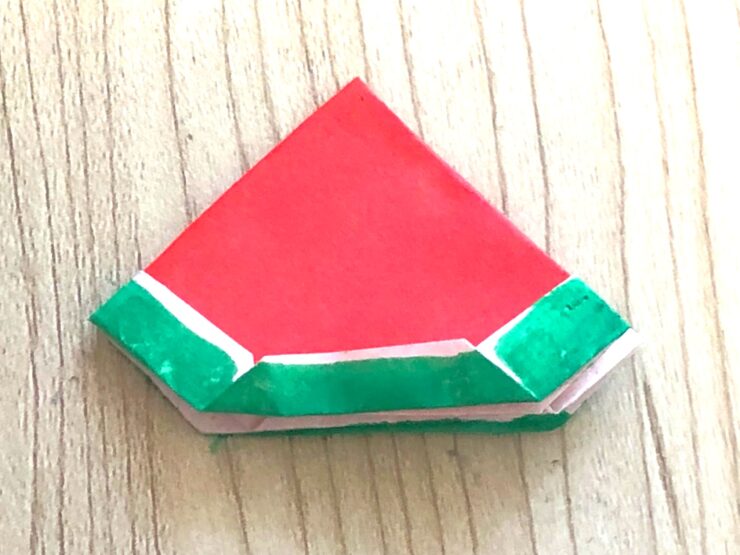 3歳児でも楽しめる、三角平面スイカ折り紙の作り方折り方