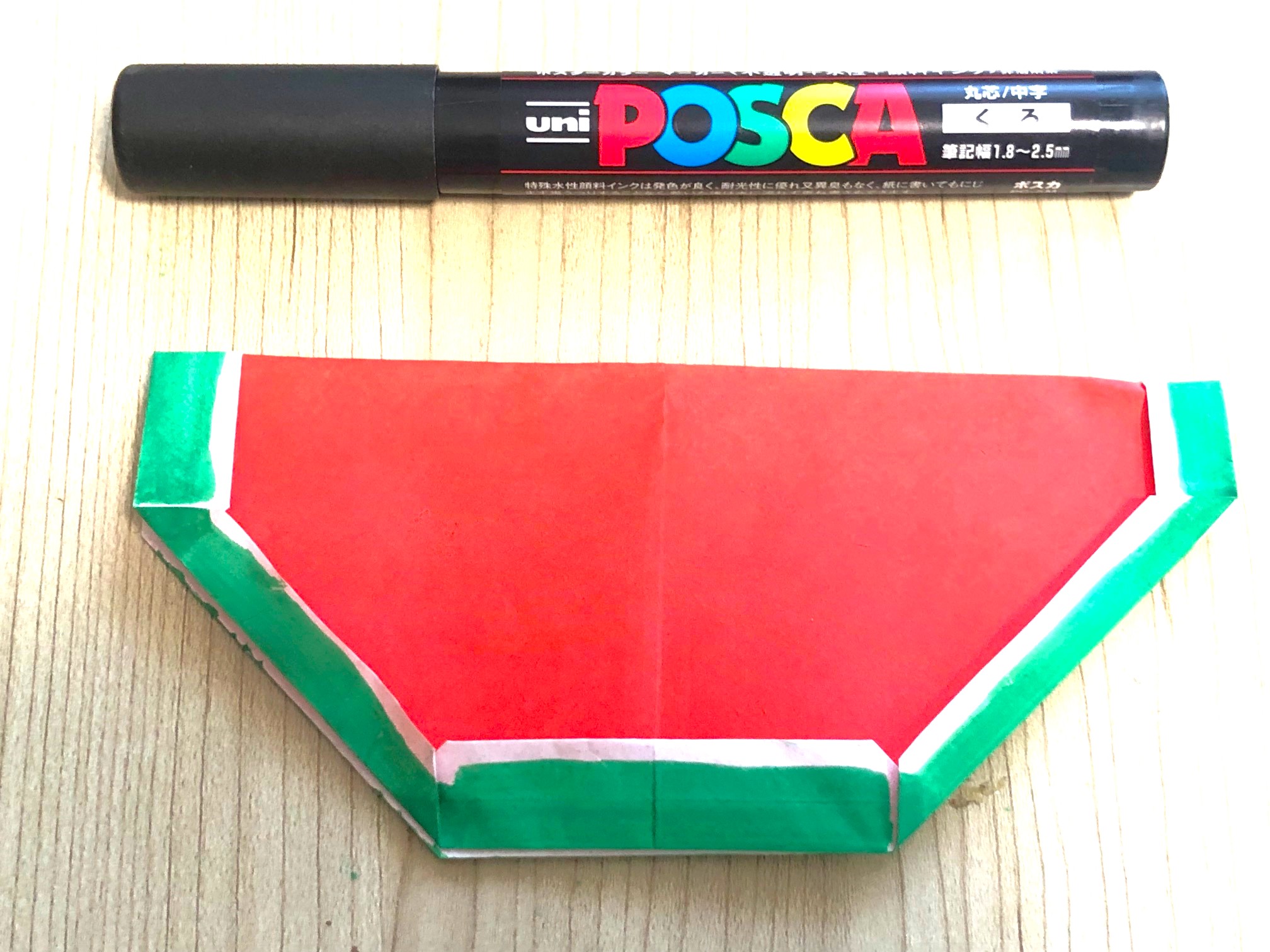 折り紙1枚でとっても簡単にスイカが完成しましたね!